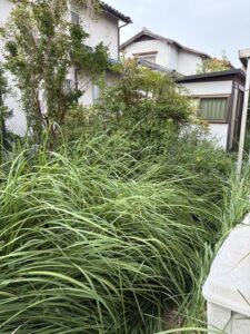 今回は、半田市内のお客様からご依頼いただいた「草刈り作業」の事例をご紹介します。 ビフォー:お庭一面に草や木が生い茂り、人の背丈を超えるほど成長してしまった状態。 足の踏み場もなく、蚊や害虫の温床にもなりやすく、放置する