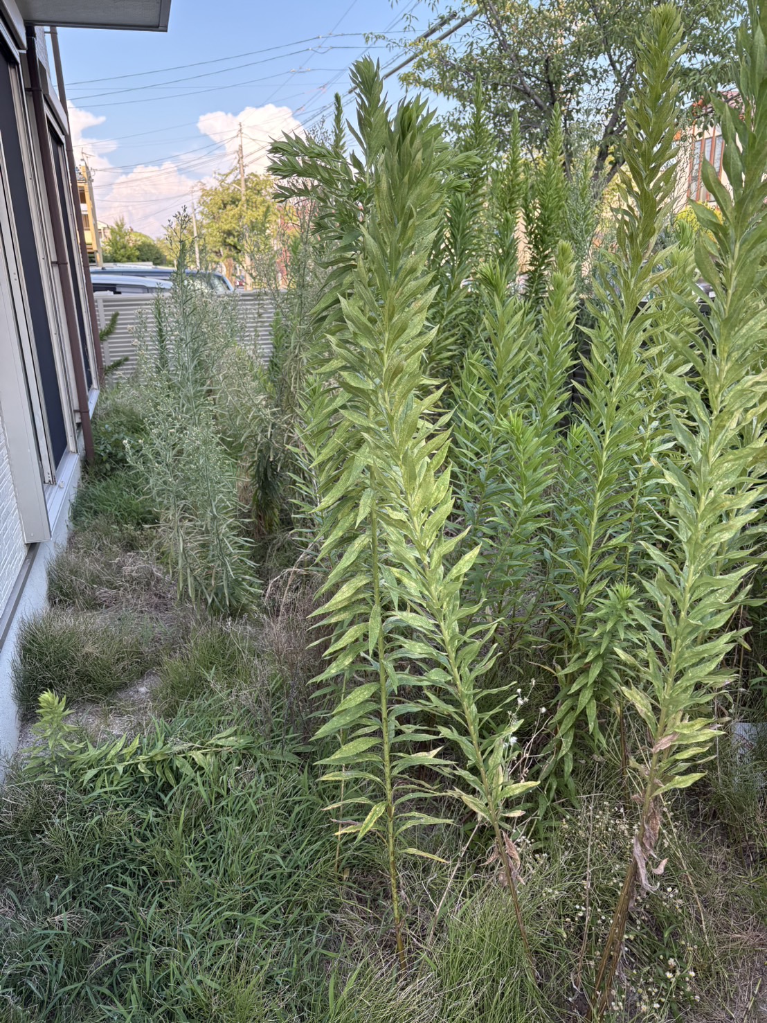 ビフォー:お庭一面に草や木が生い茂り、人の背丈を超えるほど成長してしまった状態。